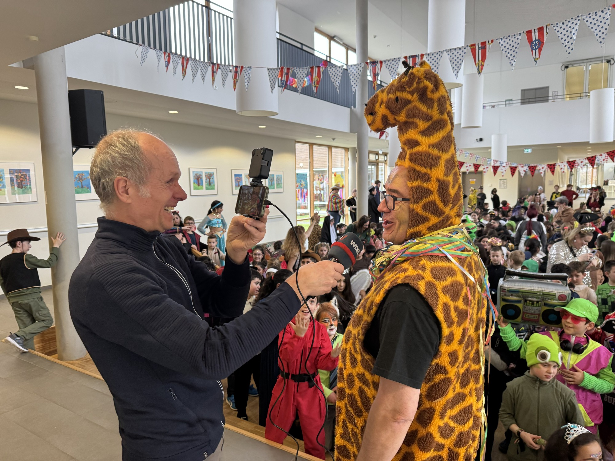 Als außergewöhnlicher Höhepunkt in diesem Jahr wurden Henry und Elisa aus der Klasse 4a den Tag über von einem Kameramann des Westdeutschen Rundfunks begleitet. Die spannenden Eindrücke der Karnevalsfeier wurden noch am selben Abend im Fernsehen ausgestrahlt – ein unvergessliches Erlebnis für die beiden und die gesamte Schulgemeinschaft. Den Beitrag finden Sie hier (ab 16:32):